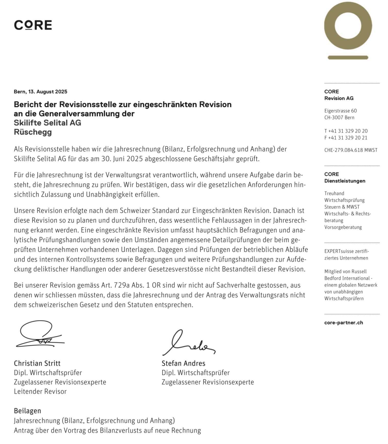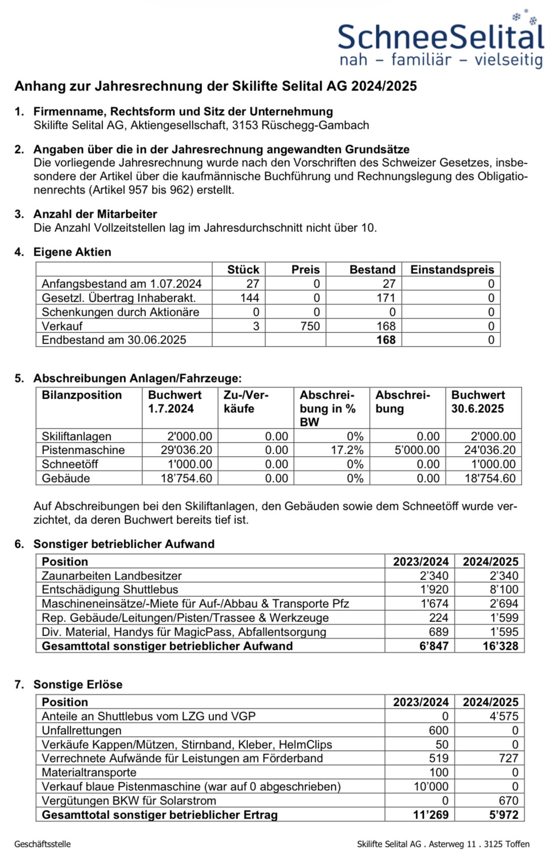 Geschäftsbericht 2024 / 25 Skilifte Selital AG
